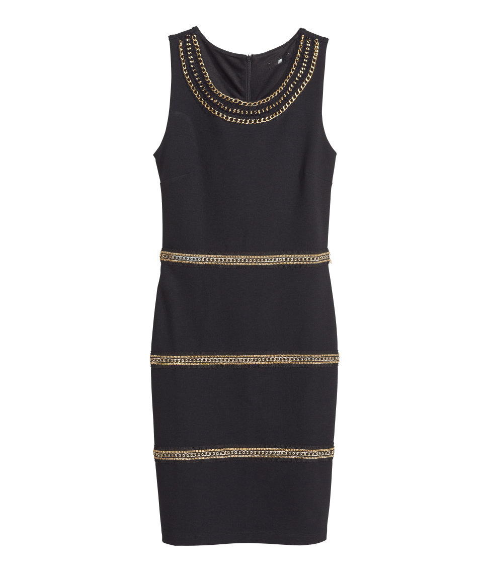 KJOLE MED GULLRENDER: Kjole med gulldekor er både elegant og classy. Denne enkle, men kjempefine kjolen er fra H&M og koster kr 399.
