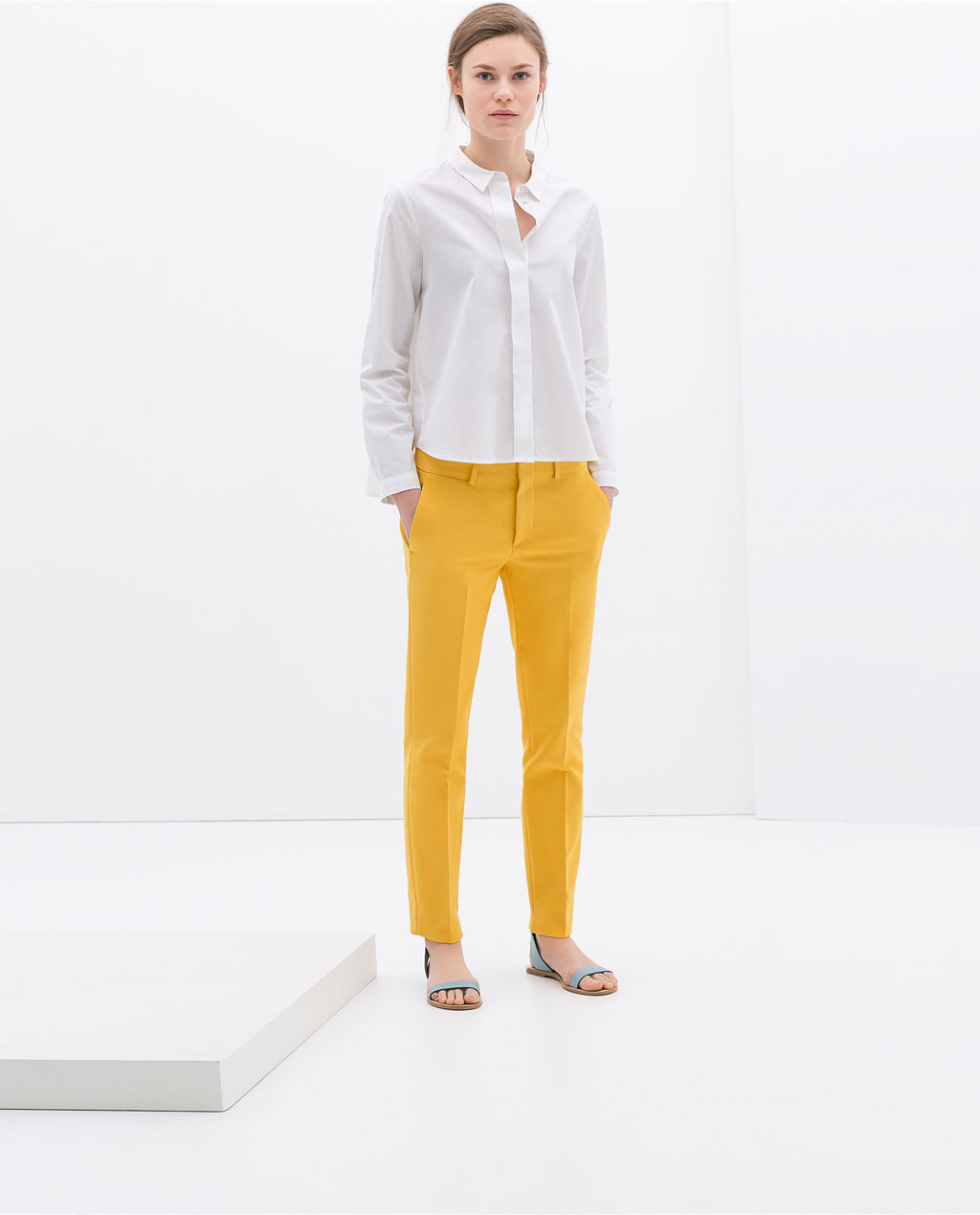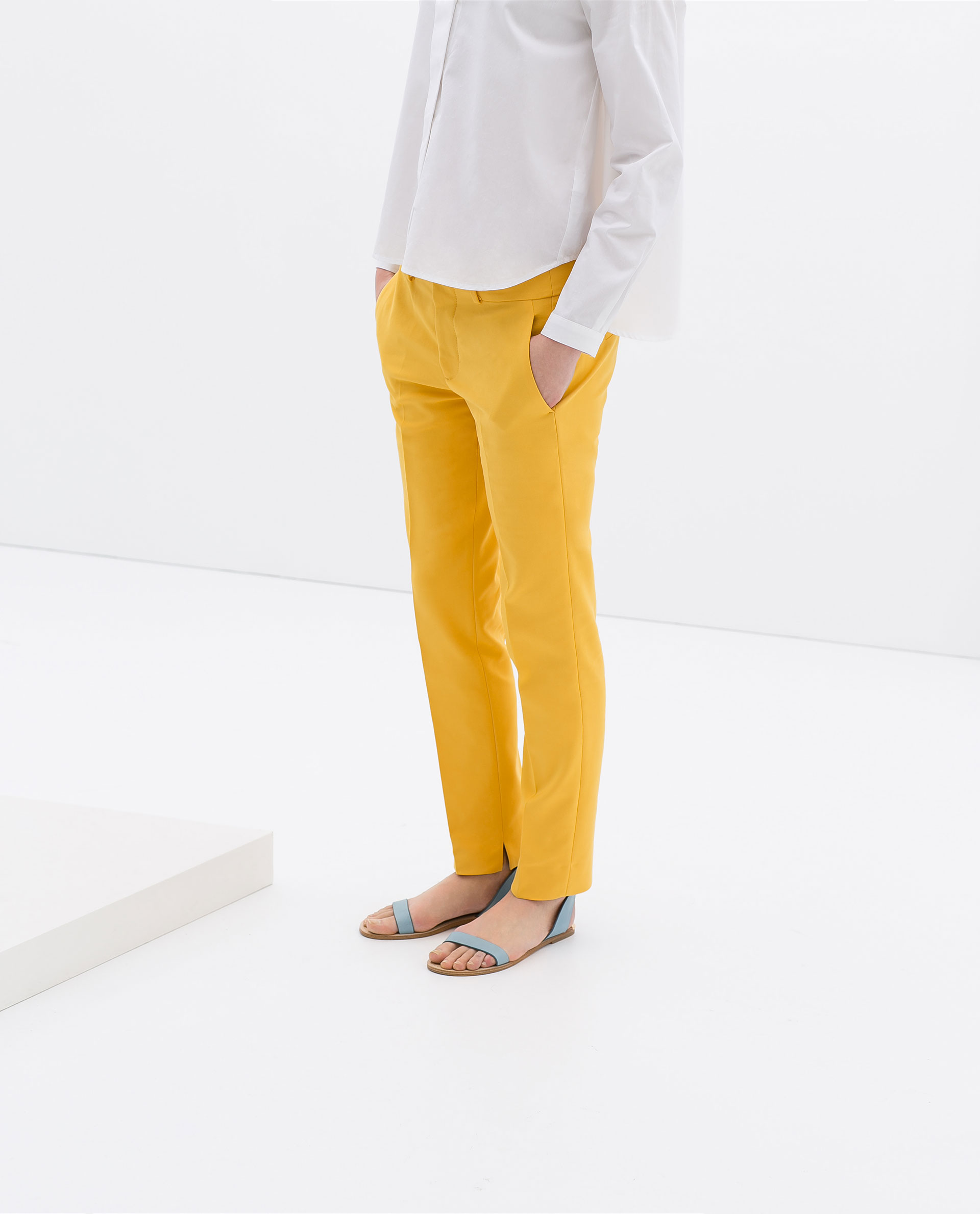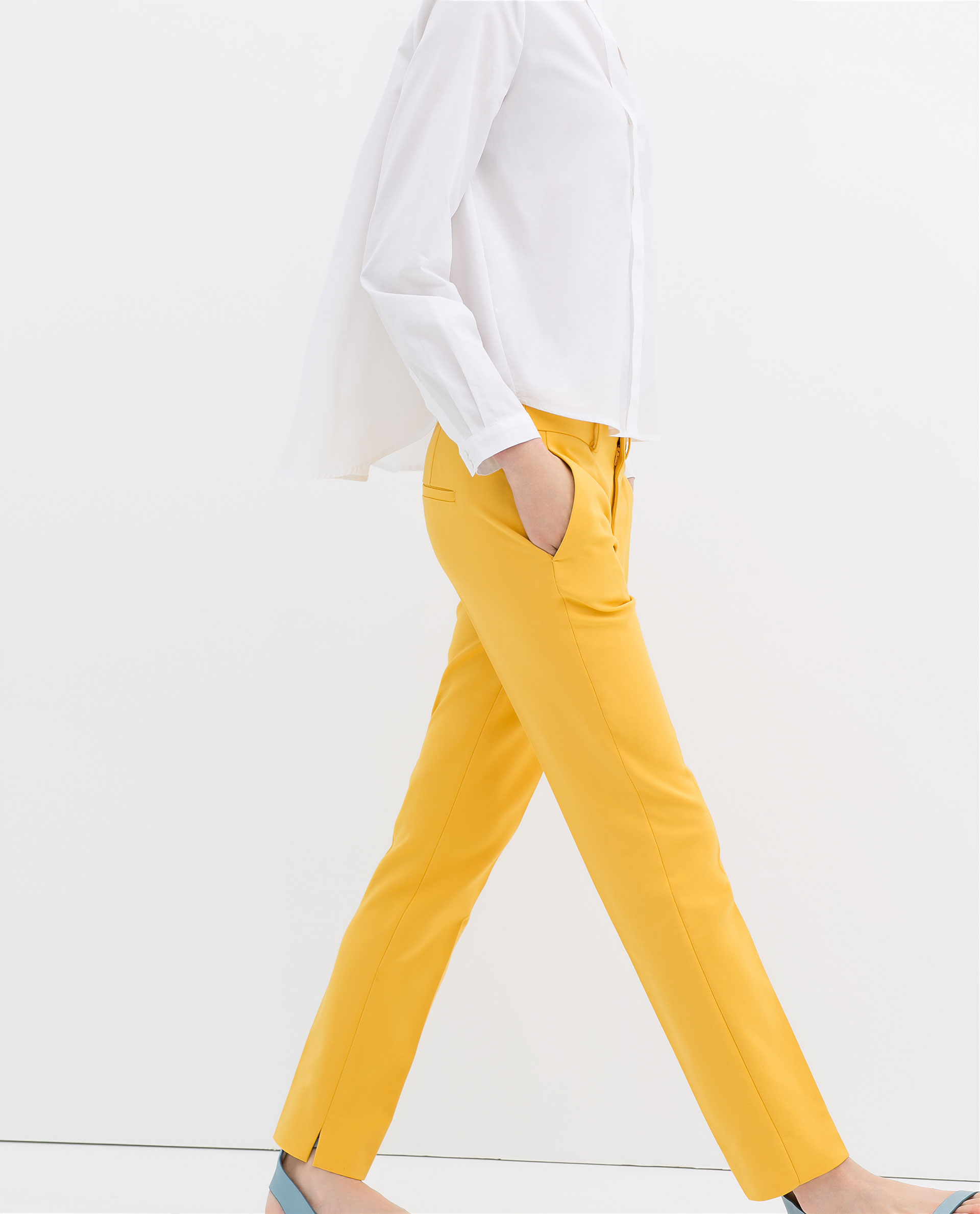Denne fine, gule buksen har akkurat kommet inn hos Zara og koster kr 399.