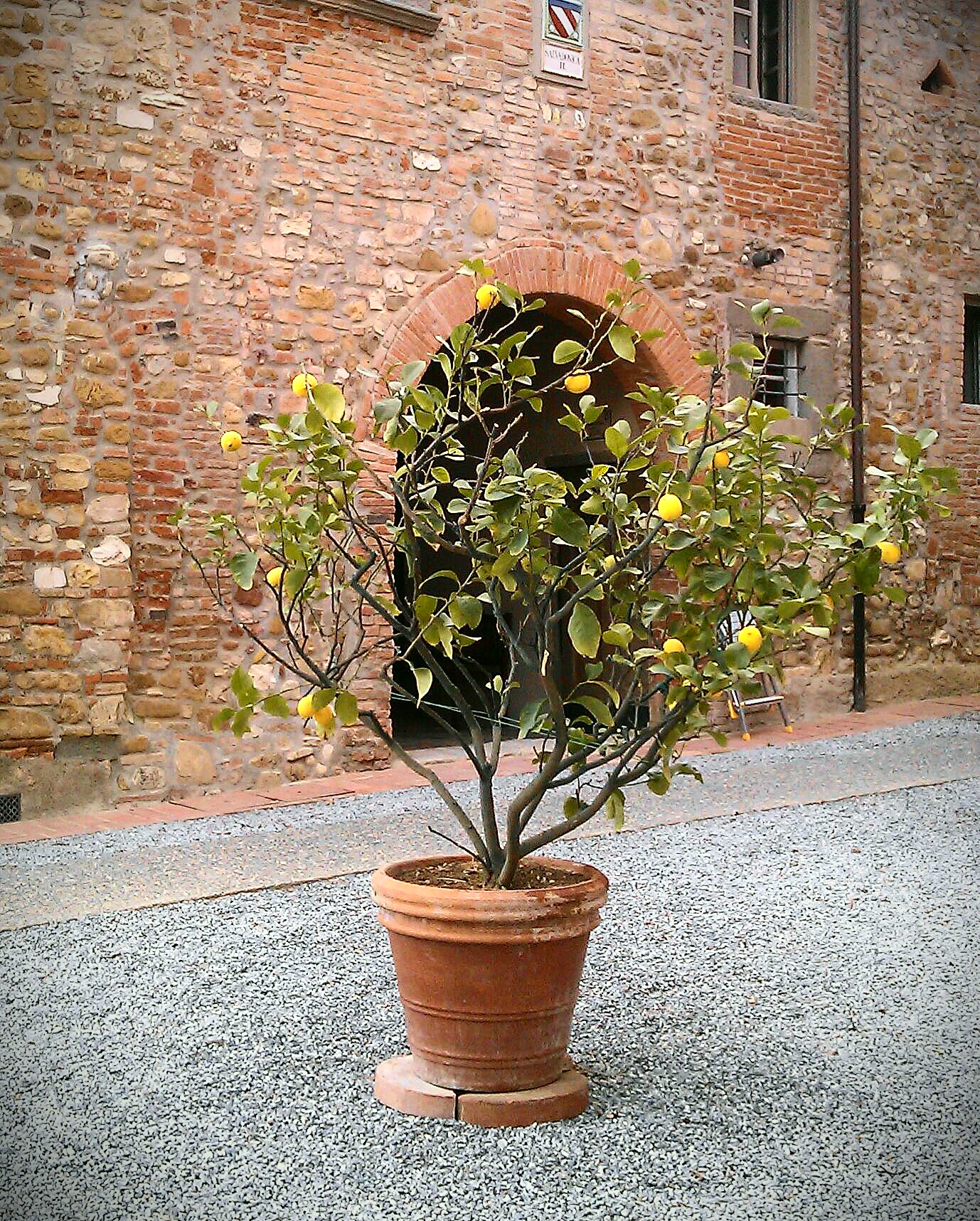 1. Skiltet som viser at jeg nærmer meg. 2. Og noe av det første som møter meg er sitrontrær på gårdsplassen. 3. Stedet består av mange flotte mursteinsbygninger.