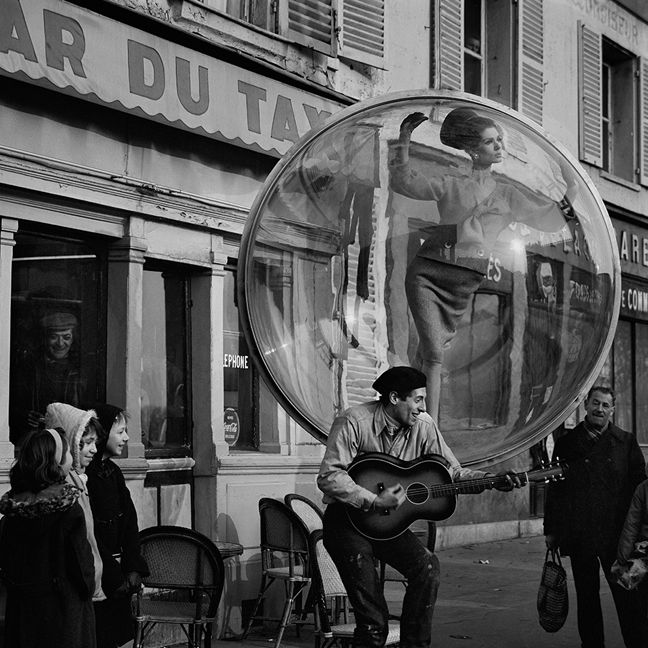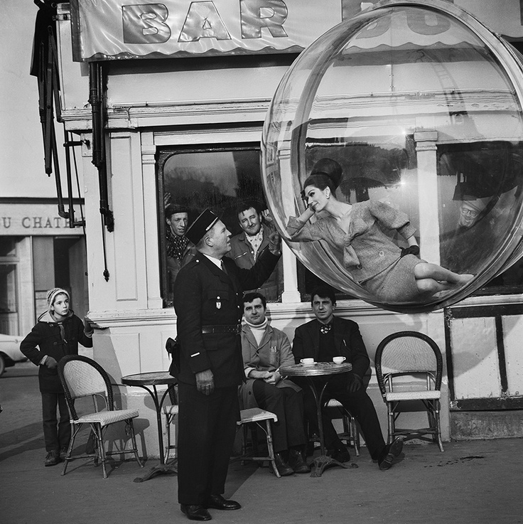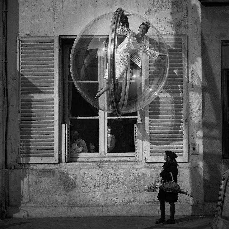 Jeg har fått så utrolig dilla på såpebobler om dagen! Aner ikke hvorfor, men det gir meg en barnslig glede. Synes alltid det har vært så vakkert å se på boblene som svever avsted. Så egentlig var planen å søke etter vakre bilder av såpebobler for å dele med dere. Men så kom jeg over denne fantastiske moteserien, tatt av motefotografen Melvin Sokolsky for Harper’s Bazaar, våren 1963. Modellen inni boblen, som er laget av plexiglass er Simone d’Aillencourt, som var Sokolskys favorittmodell på denne tiden. Og bildene er tatt på forskjellige locations i Paris.