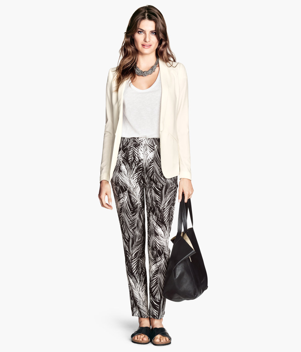 1. og 2. Sort/hvit mønstrete bukser fra H&M, kr 199 og kr 149.
