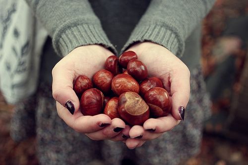 I går fant jeg helt plutselig og veldig uventet årets første kastanjer. Jeg var på vei til vernissage hos Galleri 69, for å se den morsomme og dyktige kunstneren Astrid Runde Saxegaard. Og der, i bakgården utenfor galleriet, lå de. Helt ferske, nyklekket og fine. O’ lykke!!! Ble jo så glad, og plukket lommene fulle. Jeg har nemlig hørt at kastanjer bringer lykke. Og det vil jeg jo ikke gå glipp av! I dag skal jeg ut for å jakte på flere. Det er i hvert fall lykke for meg.