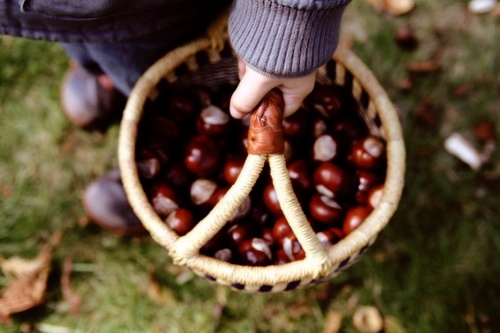 … plukke en kurv full av kastanjer!! De har endelig begynt å ramle ned nå. Og få ting gjør meg lykkeligere enn å plukke helt ferske, nyutsprungne kastanjer!!! ❤