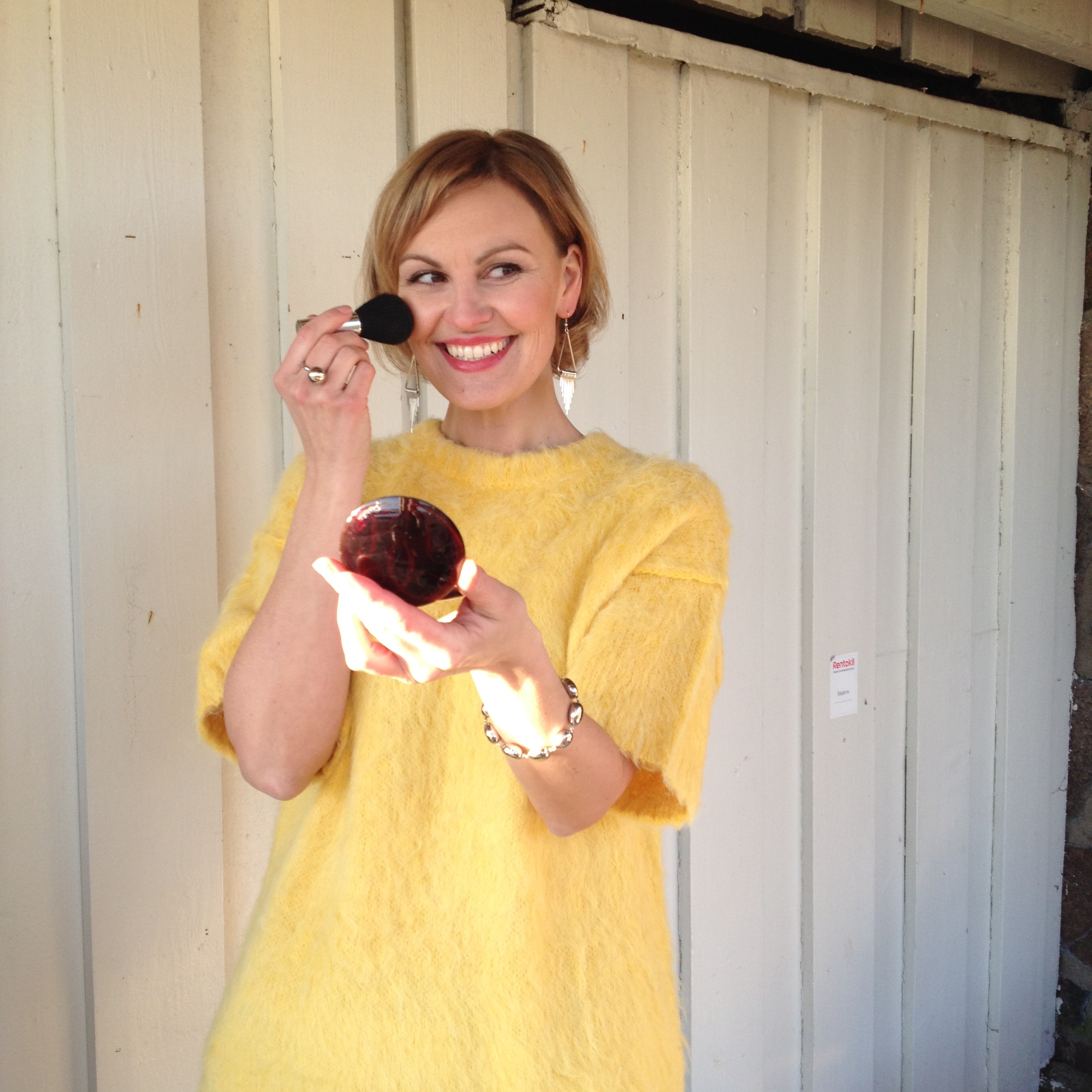 Nydelige Cecilie fra Team var dagens modell. Men selv om det var sol, var det ganske kaldt, og modellen måtte hyppig pudre nesen for ikke å bli helt Rudolf-rød på den. Det var tross alt vårklær som skulle fotograferes.