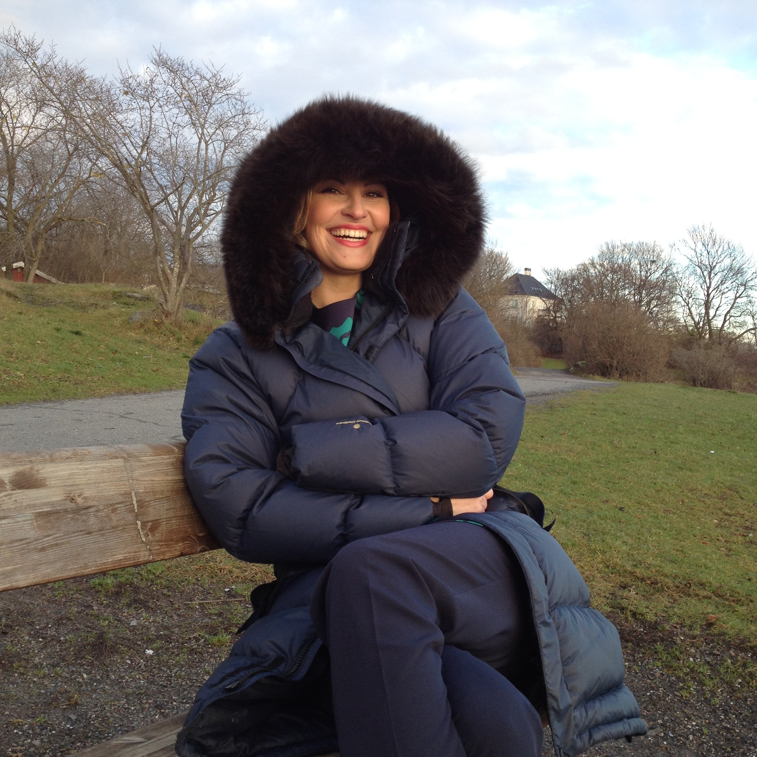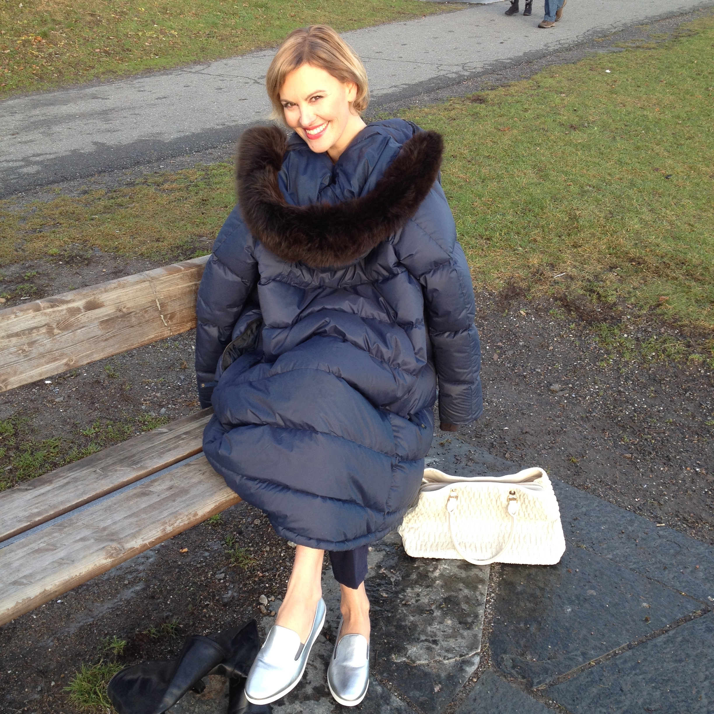 Ikke alltid like glamorøst å være modell. Cecilie hadde heldigvis med en varm boblekåpe, som kom godt med mellom opptakene.