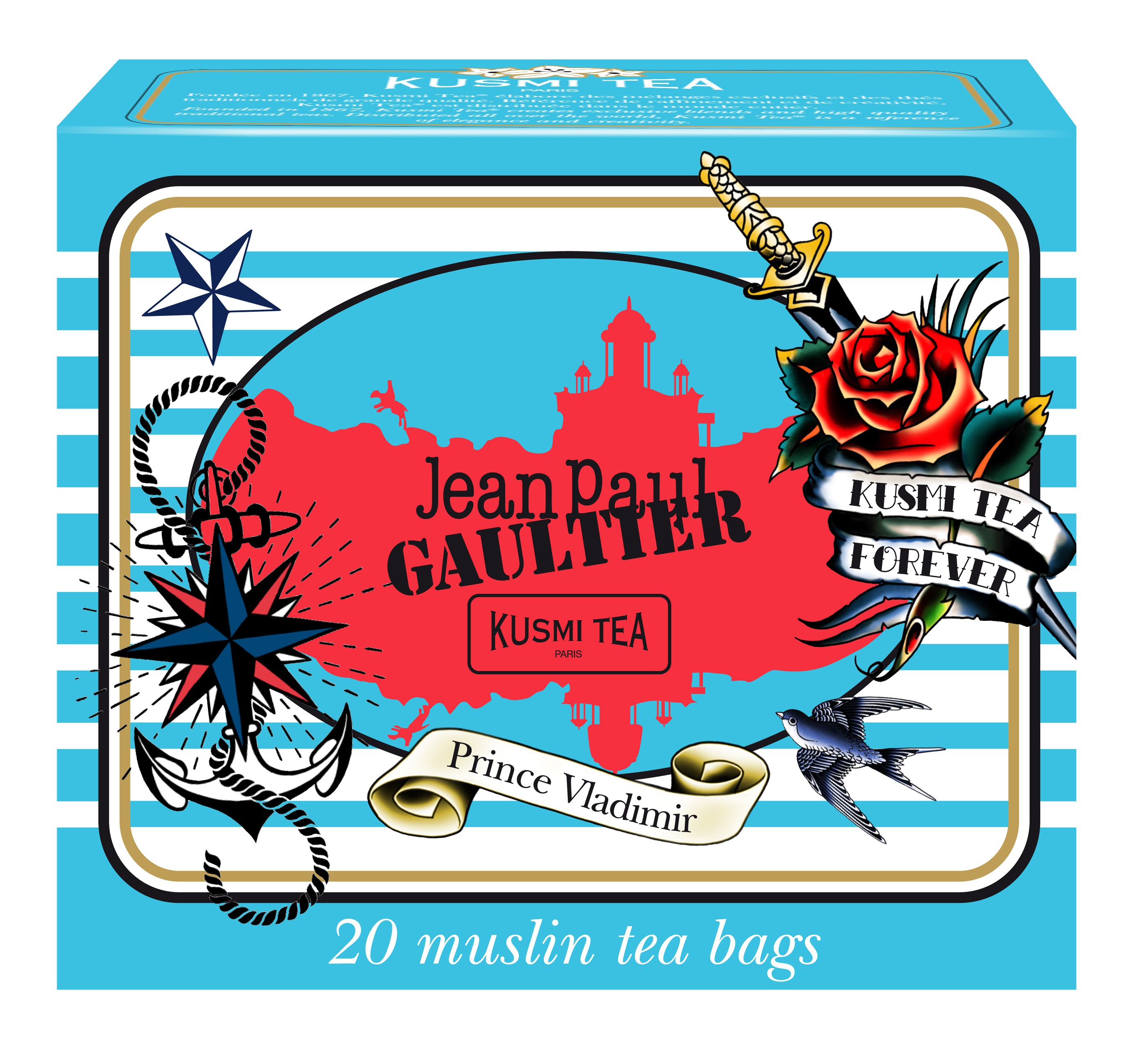 I anledning den retrospektive utstillingen til den franske designeren Jean-Paul Gaultier på Palais de Tokyo, i Paris denne sommeren, har han et samarbeid på gang med teprodusenten Kusmi Tea. Han har rett og slett «kledd opp» to av temerkets klassikere, nemlig Prince Vladimir og Anastasia.