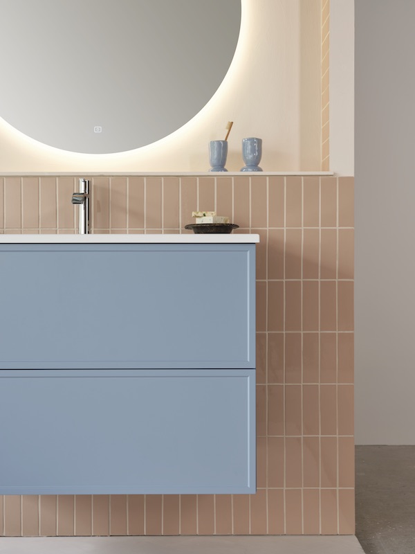 Vedum lanserer nå servantskapet Free 900 med fronten Thea i fargen himmelblått, designet av Studio In som består av duoen Atta Anäng Ring og Maja Furenberg Ring. Inspirasjonen er hentet fra den klare blåtonen som himmelen har på en solfylt dag. Som vi ser passer den helt perfekt på badet. Legg også merke til hvordan den lyseblå nyansen balanseres mot en varm bakgrunn. Noe som gjør uttrykket alt annet enn kaldt eller kjedelig. Free kommer også i breddene 400, 500 og 600 mm.